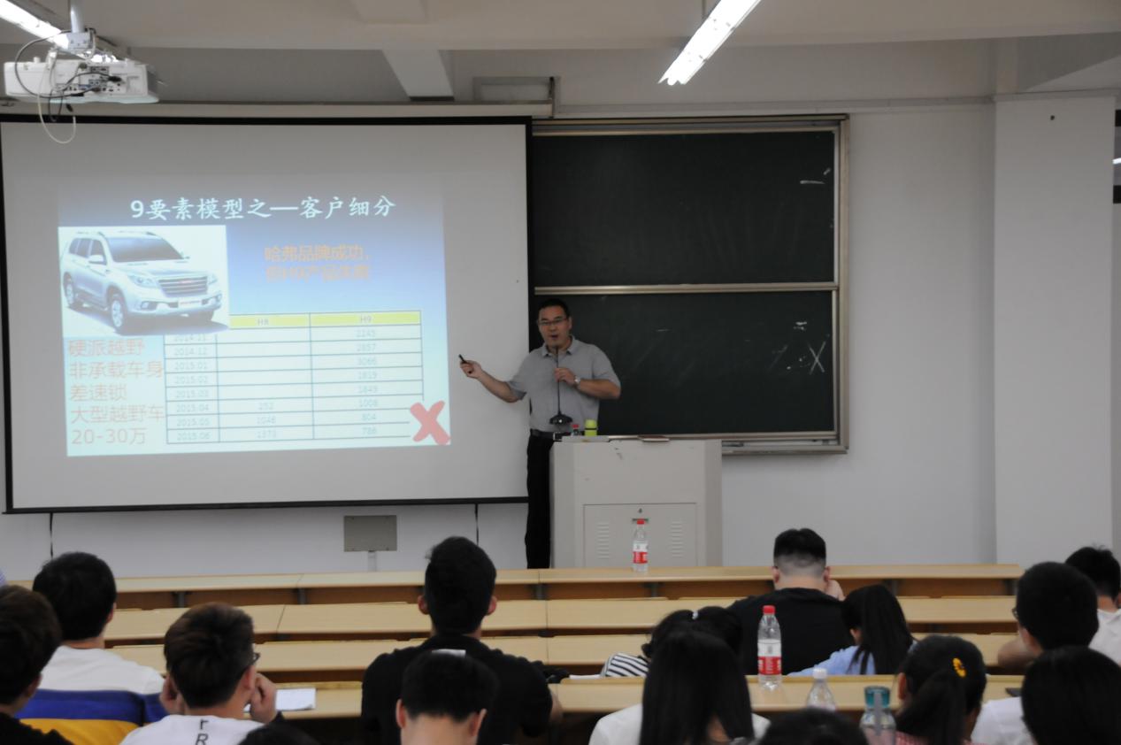 本次讲座的主要内容是商业模式中的9大要素介绍和解读——客户细分、客户关系、合作伙伴、盈利模式、成本结构、核心资源、资源配置、分销渠道和价值主张。对每一个要素的剖析崔教授都进行了详细的展开,并举例一些著名的企业成功与失败的案例,为同学们进行具体形象的阐述。例如在讲到客户细分这一要素时,他以小米公司为例,在小米手机发售之初,公司对客户精准的定位,使得小米手机在发布后获得了大量客户的支持和购买。崔教授用自身的创业经历讲解和商业经验的传授,在为同学们带来了一场生动的讲座的同时更是受到了创新创业教育的洗礼。